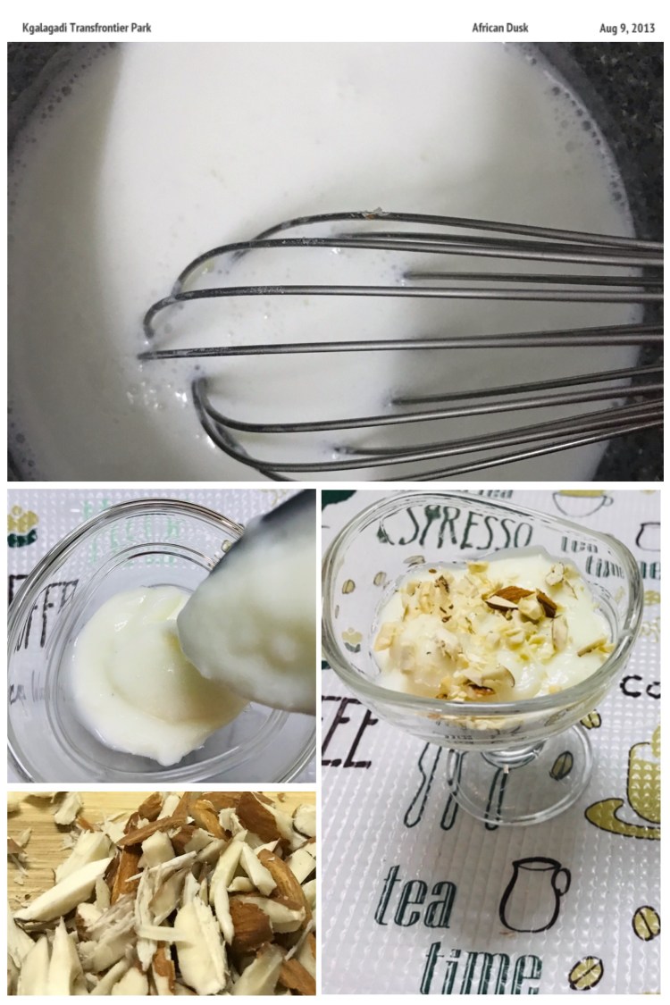 Roughly chop almonds, When the cream is cold, serve it with your almonds and enjoy!